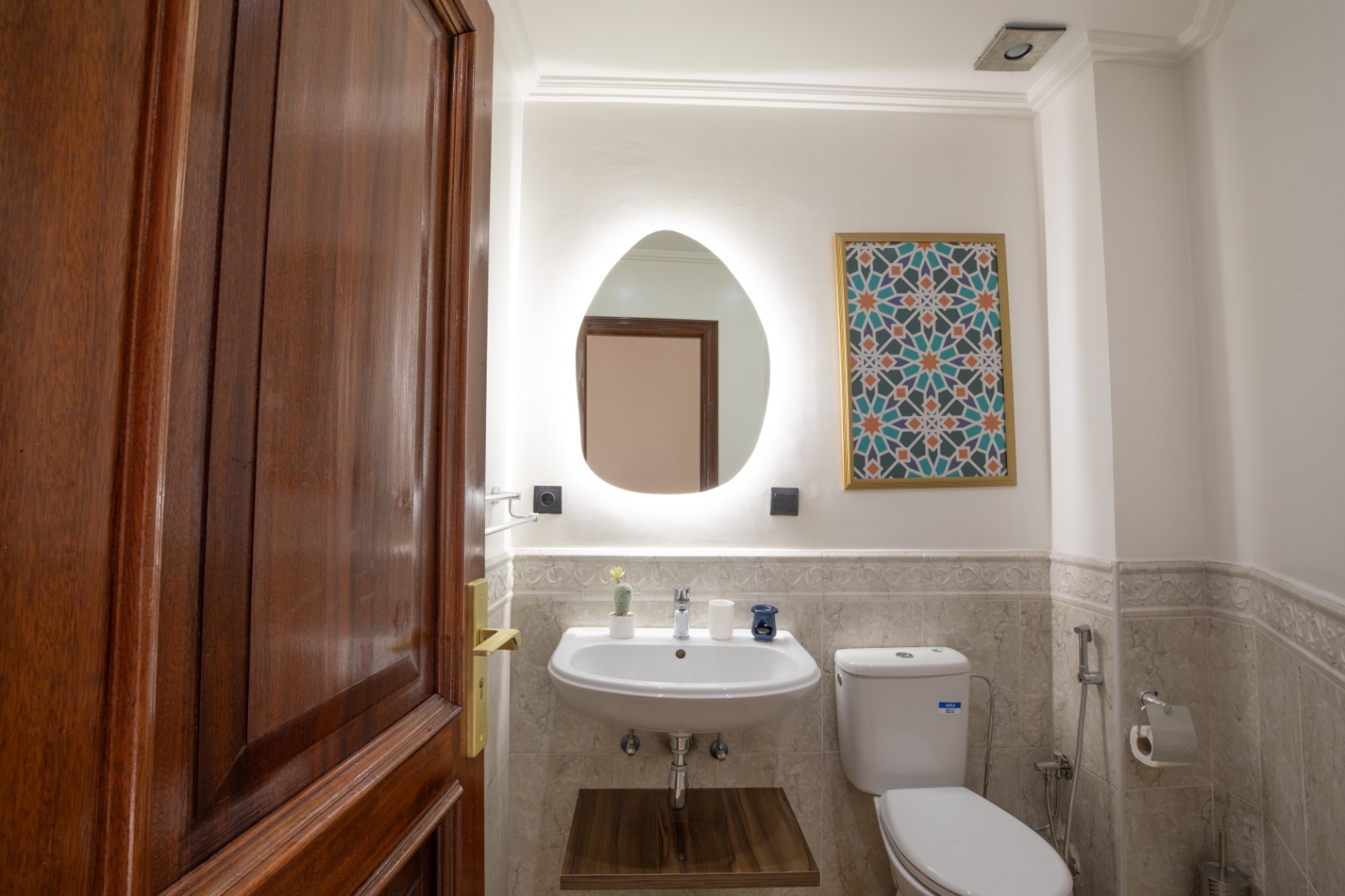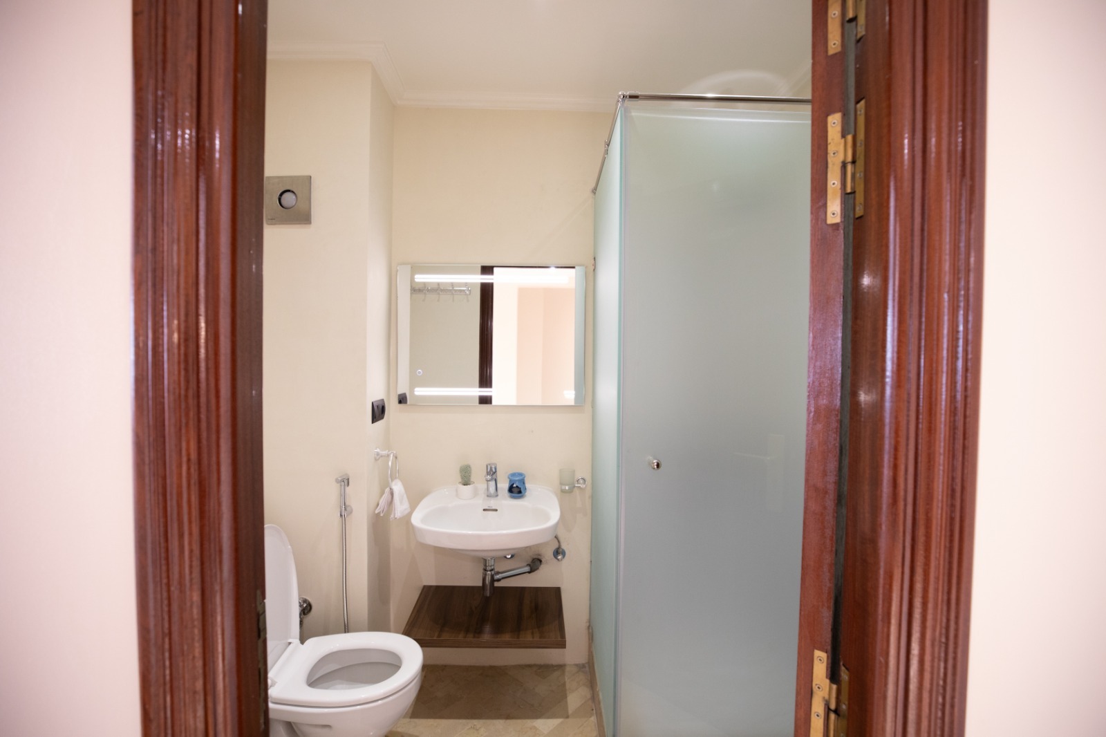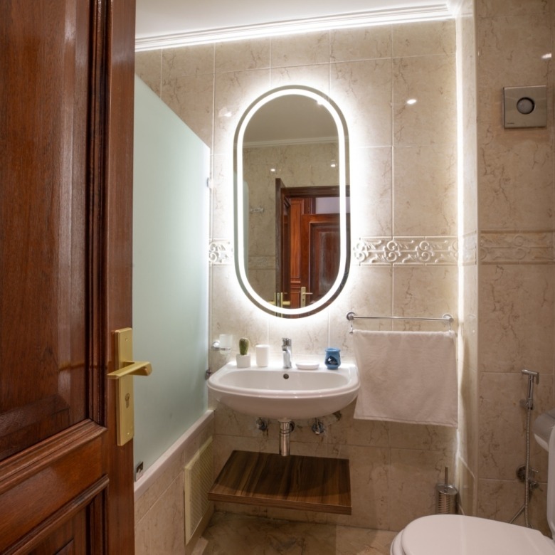 - Hall d’entrée spacieux, agrémenté d’une demi-salle de bain pratique pour vos invités.