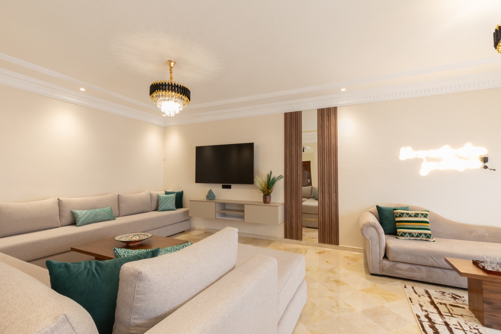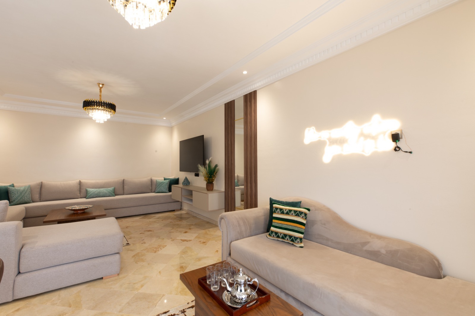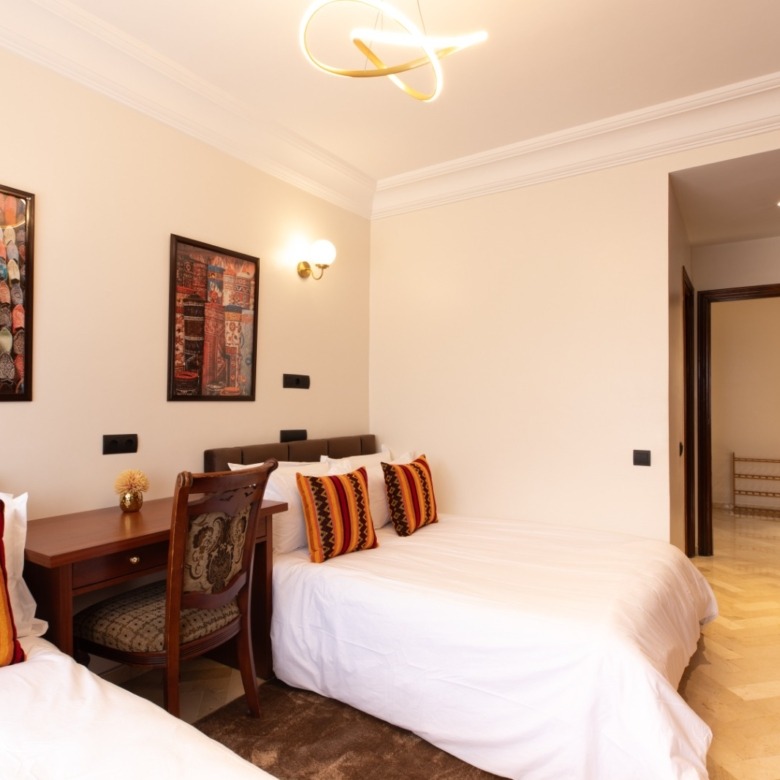 Offrez-vous un mélange parfait de luxe et d’accessibilité dans cet appartement spacieux et meublé de 3 grandes chambres, conçu pour que vous vous sentiez comme chez vous… ou encore mieux. Situé dans une rue calme du prestigieux quartier Maarif au cœur de Casablanca, cet appartement est idéal pour les familles, les professionnels ou les vacanciers.