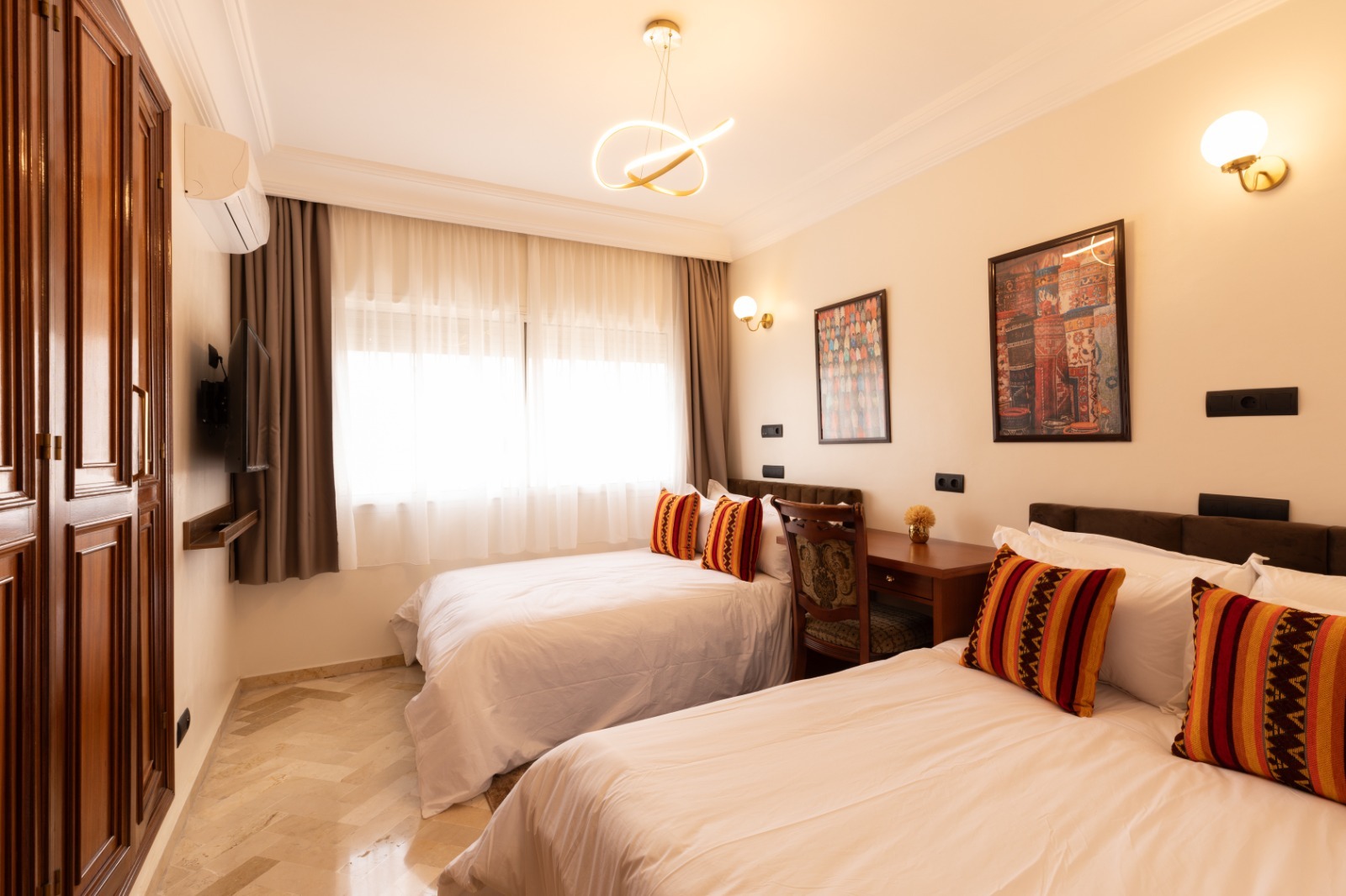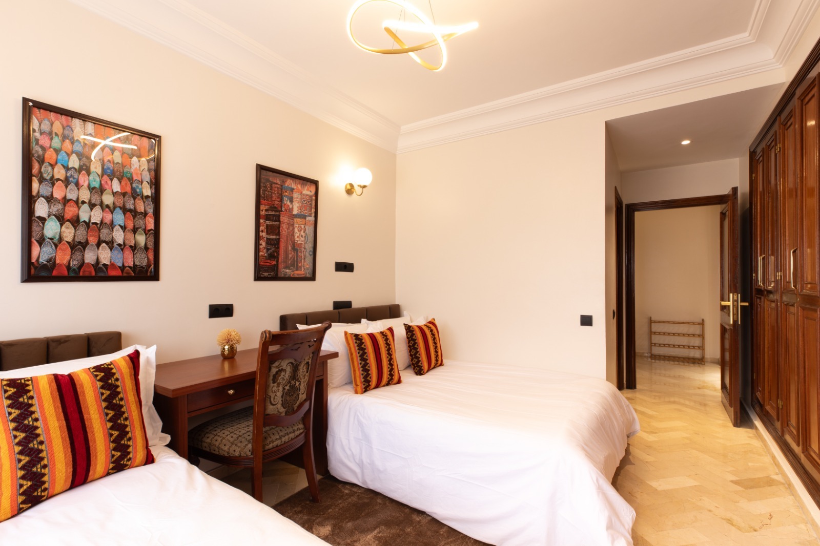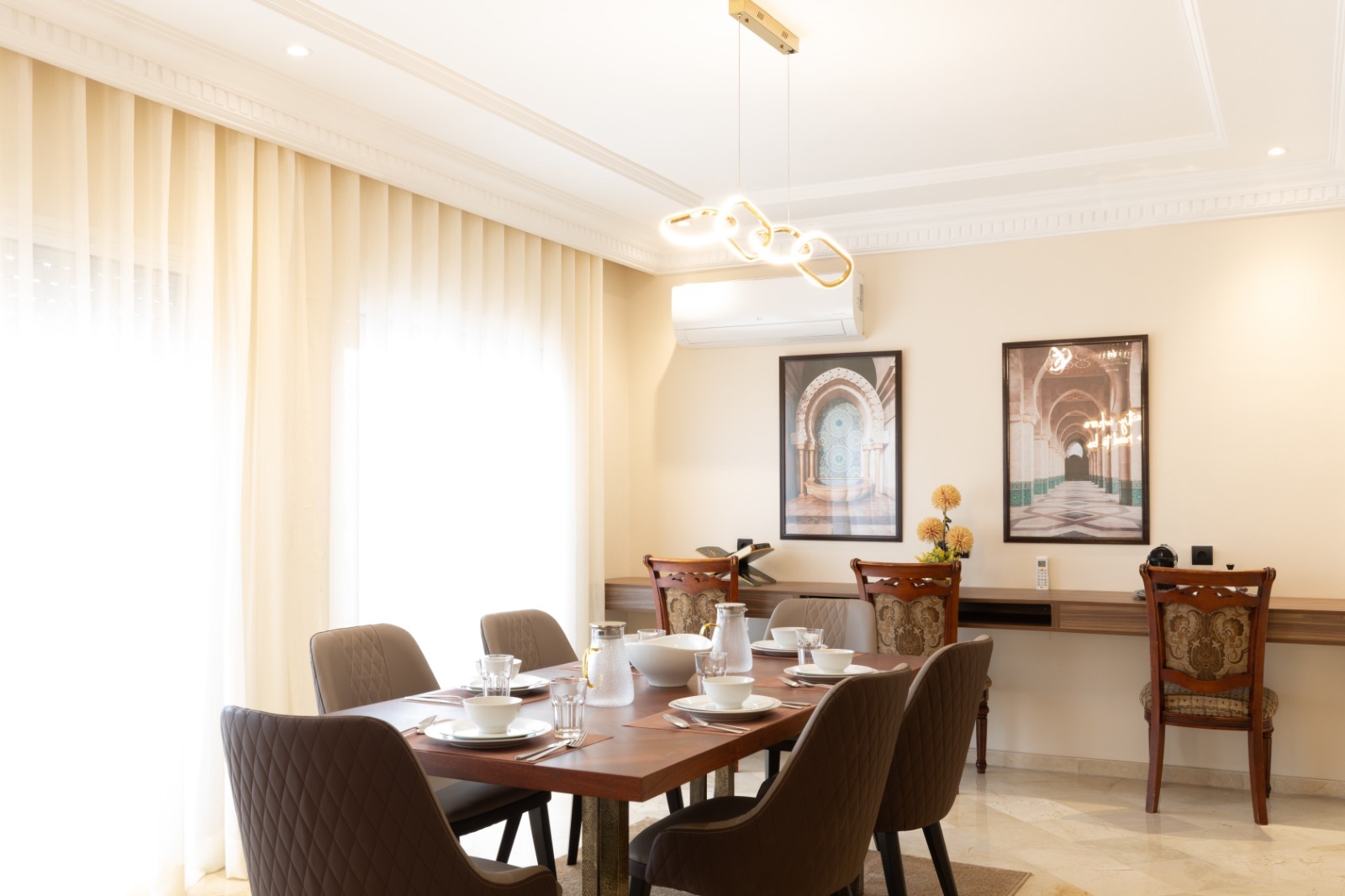 Offrez-vous un mélange parfait de luxe et d’accessibilité dans cet appartement spacieux et meublé de 3 grandes chambres, conçu pour que vous vous sentiez comme chez vous… ou encore mieux. Situé dans une rue calme du prestigieux quartier Maarif au cœur de Casablanca, cet appartement est idéal pour les familles, les professionnels ou les vacanciers.