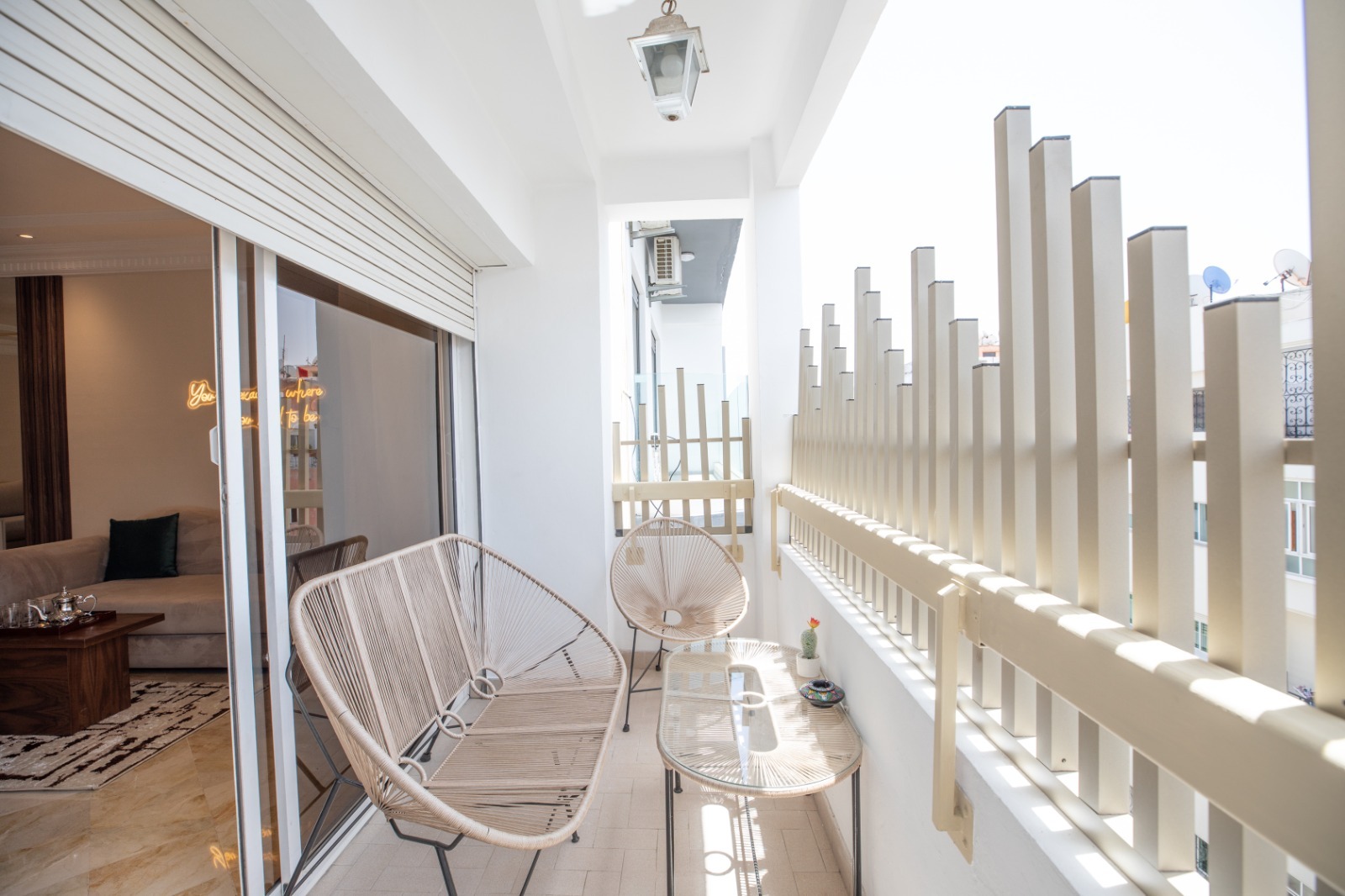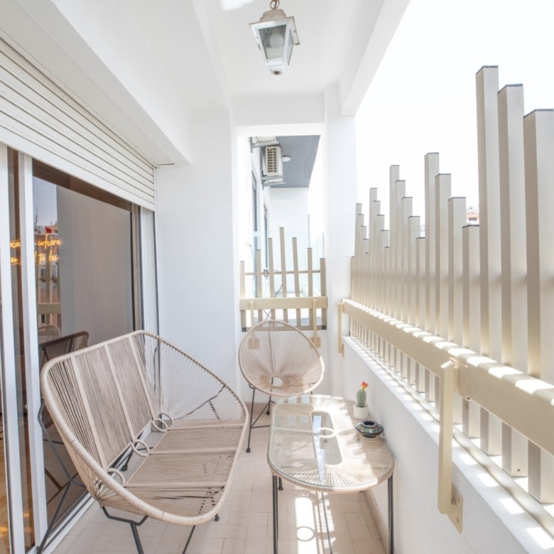 - Balcon cosy, équipé de chaises Acapulco pour se relaxer en extérieur.